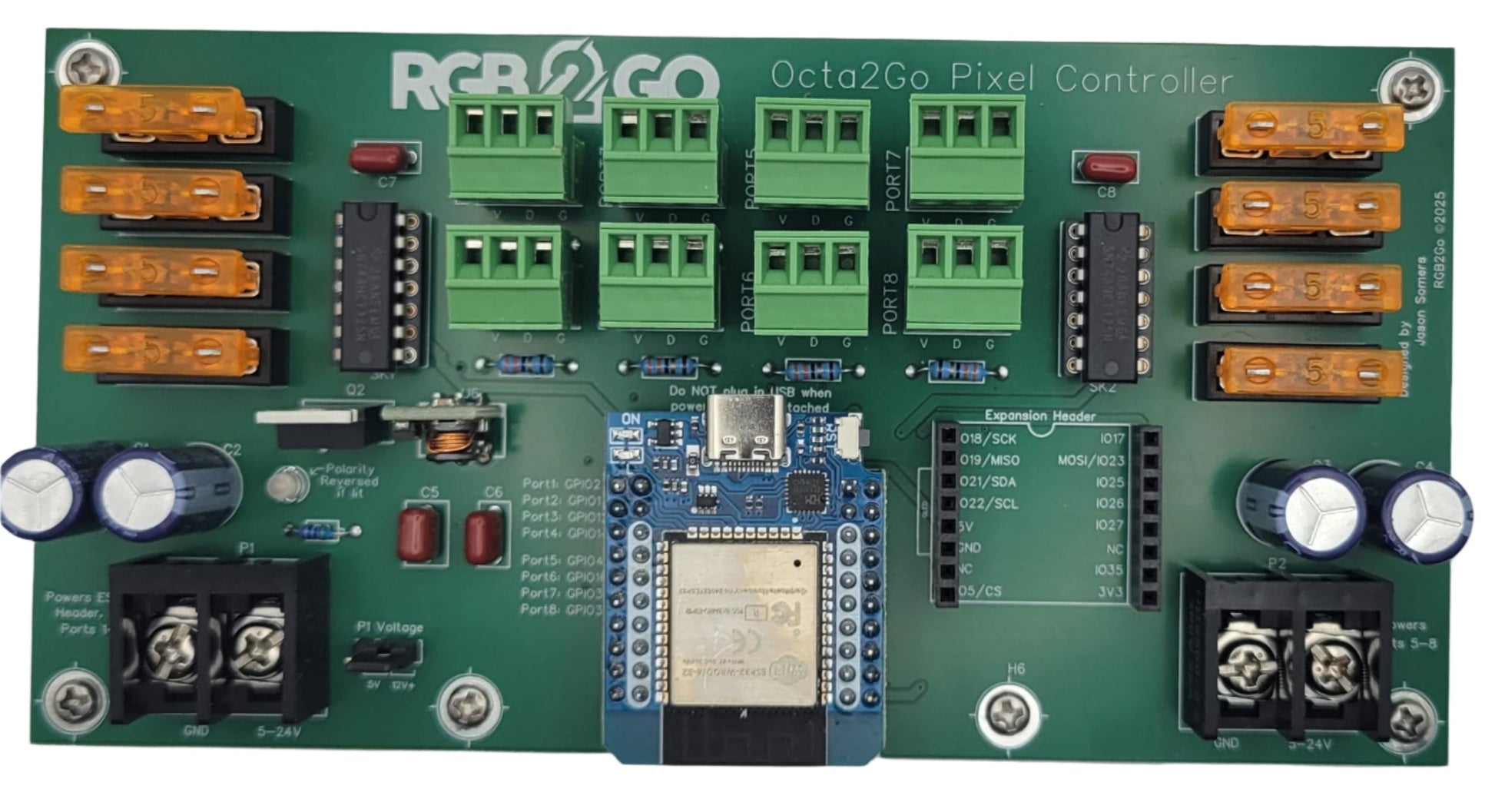 P2 does not require a jumper because it ONLY supplies power to ports 5-8) - Runs WLED software, pre-installed